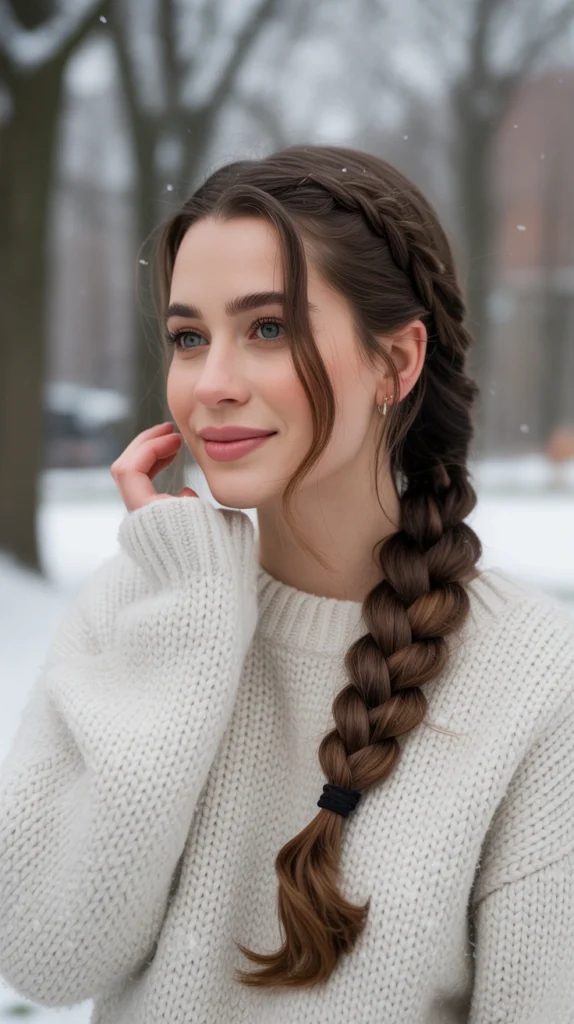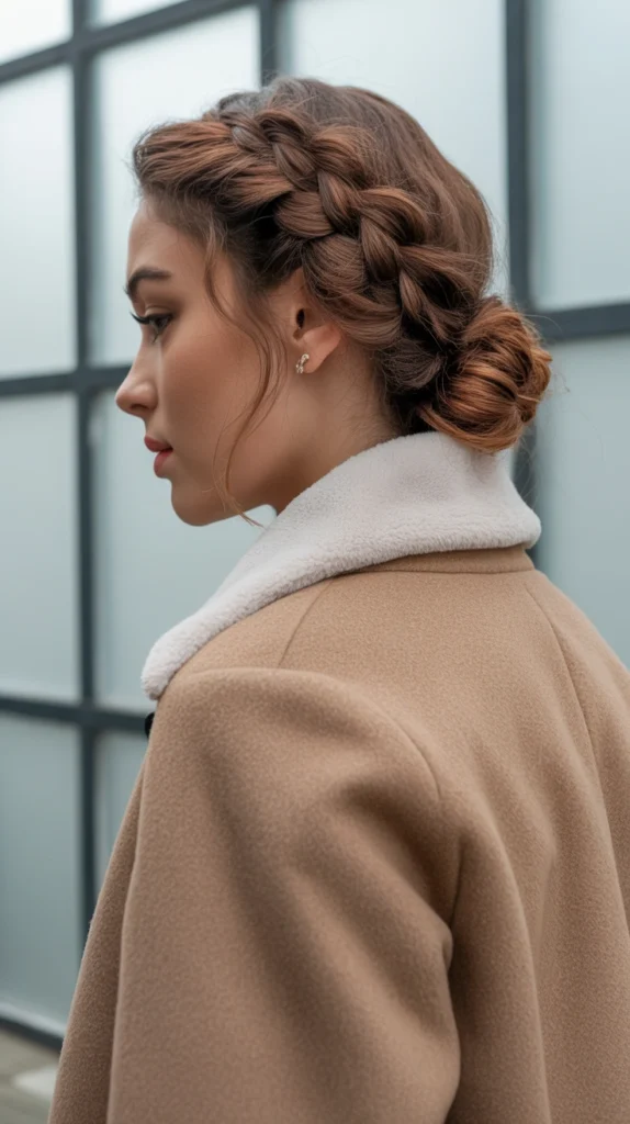 Combine elegance and practicality by tucking your braid into a low bun. This keeps your hair polished and protected from the cold.