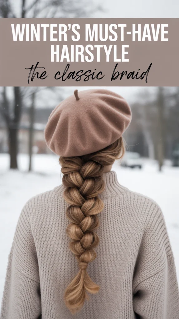 A neat and traditional French braid is a winter favorite. It keeps your hair secure and chic under scarves and hats, making it perfect for everyday wear.
